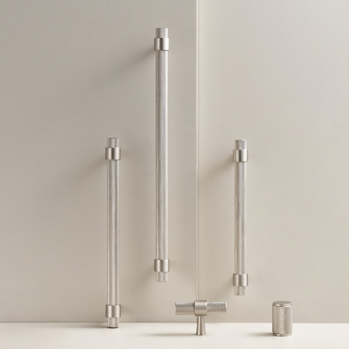 Et eksklusivt håndtak i nikkel med riflet gripeflate – et stilfullt valg for både kjøkkenfronter, baderomsmøbler og øvrige møbler. Den solide messingkonstruksjonen gir en luksuriøs tyngde, mens den riflete overflaten tilfører både karakter og funksjon.