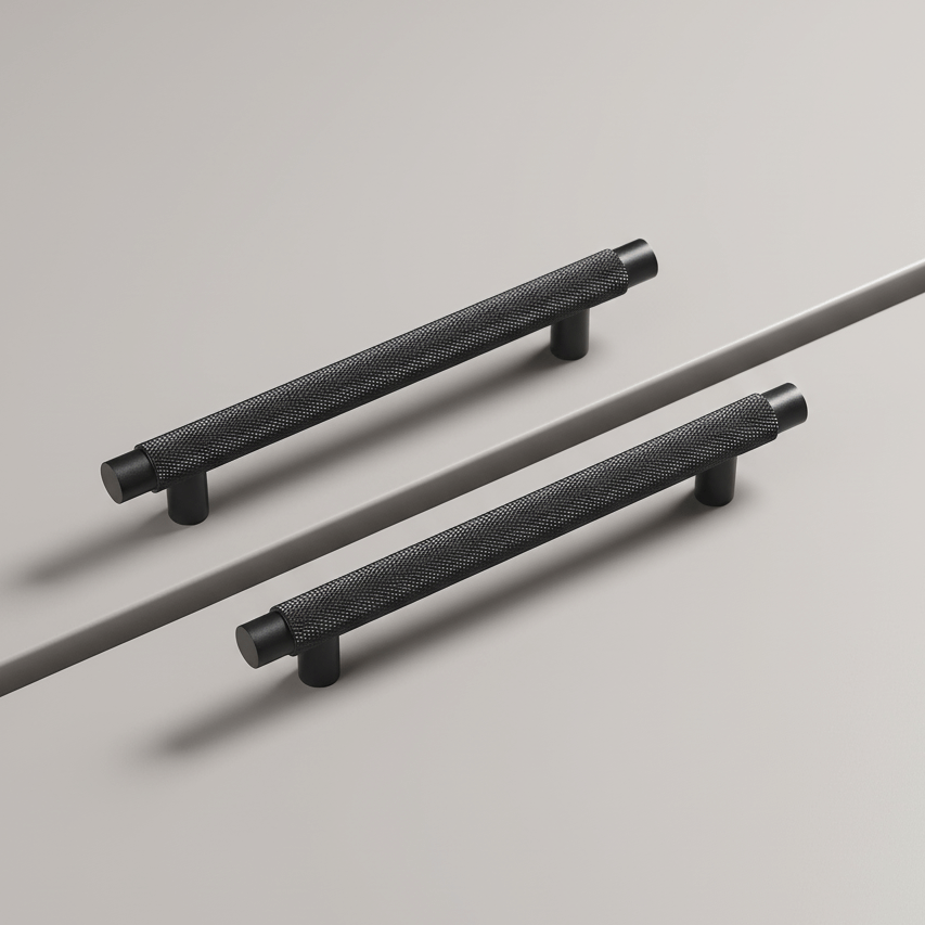 Dette massive sorte håndtaket er utformet for å gi et distinkt uttrykk, med solid tyngde og nøye riflede detaljer som skaper en moderne og industriell følelse. De dreide kantene gir et ekstra preg av eleganse og løfter designet til et eksklusivt nivå, perfekt for deg som ønsker en kombinasjon av materialer i høy kvalitet og perfekt finish. Kombiner gjerne med andre produkter i vårt sortiment av riflede håndtak, knotter og dørhåndtak for å skape en helhetlig og sofistikert stil i hele hjemmet.