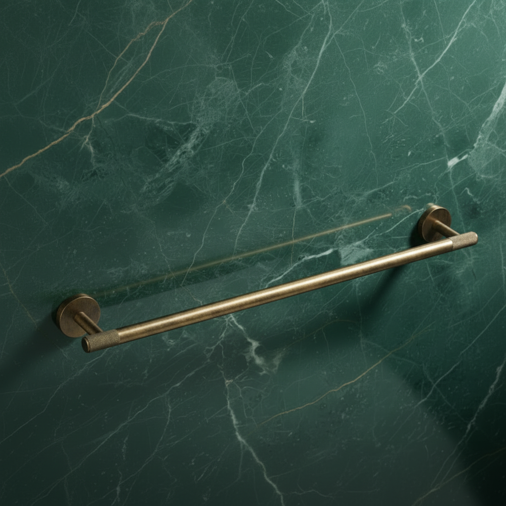 Elegante handdoekhouder in antiek messing, waarbij klassiek design wordt gecombineerd met hoogwaardige kwaliteit. De warm gepatineerde messingafwerking geeft de badkamer een tijdloze en exclusieve uitstraling, terwijl de massief messing constructie zorgt voor een stabiele en betrouwbare ophanging van handdoeken elke dag.